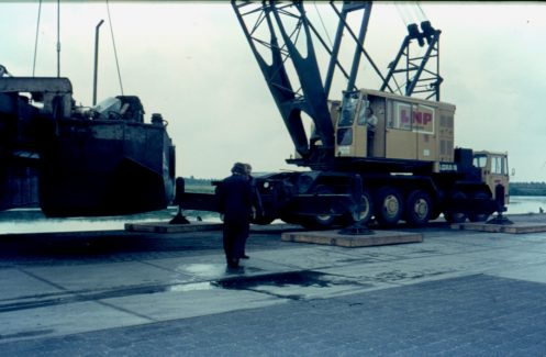 Cutterzuiger aan het werk in de Bremerhaven. Ca. 1971