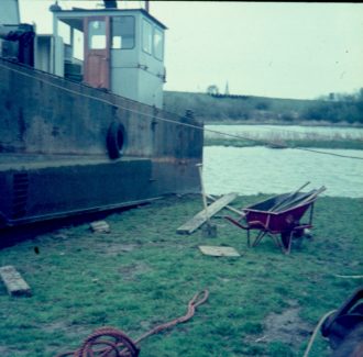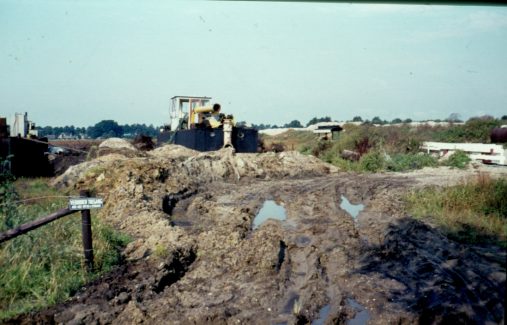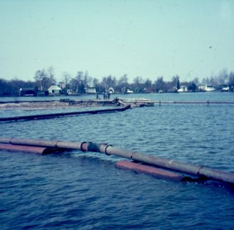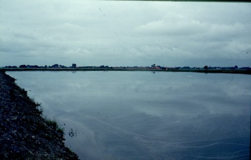 Eilanden opspuiten op het Paterswoldsemeer. Periode tussen 1960-1970